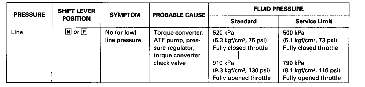 8. Shift to the N or P position, and measure line pressure at the fully opened throttle condition.