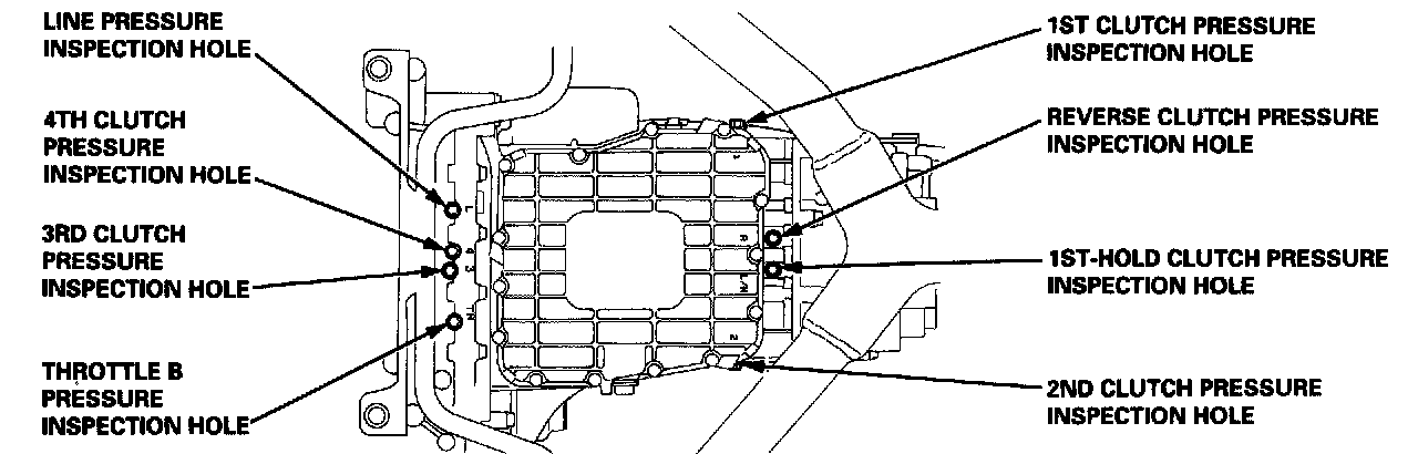12. Disconnect the special tool from line pressure inspection hole, and connect the special tool to each inspection hole.