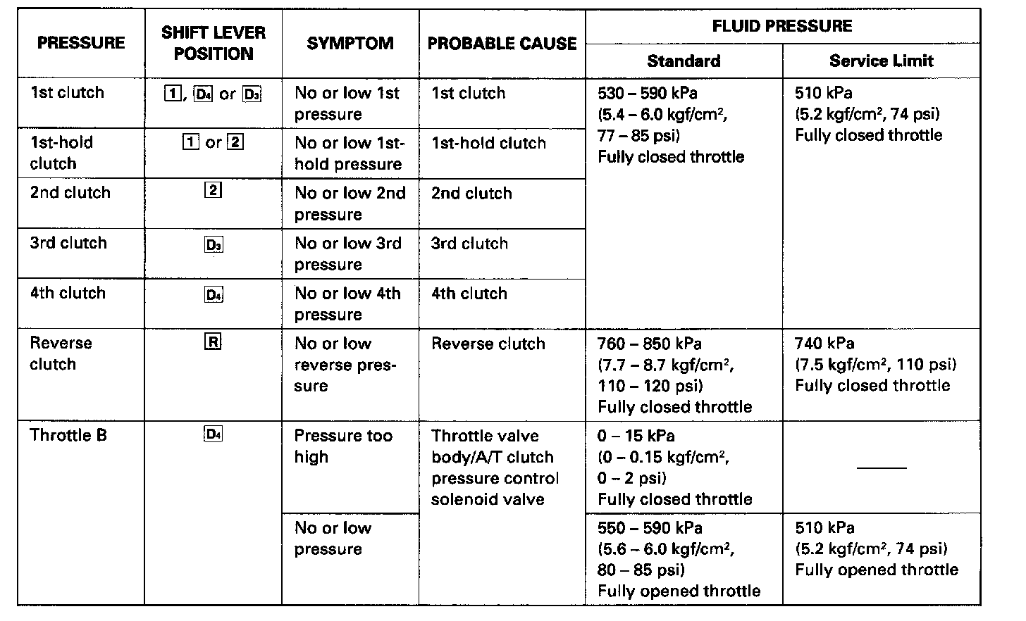 14. Shift to the respective shift lever position, and measure each clutch pressure.