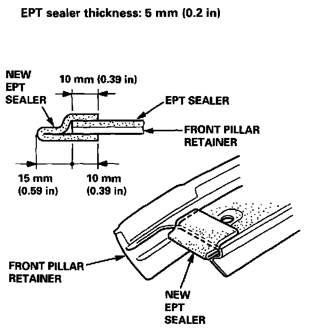 10. Glue the new EPT sealer to top edge of the front pillar retainer as shown.