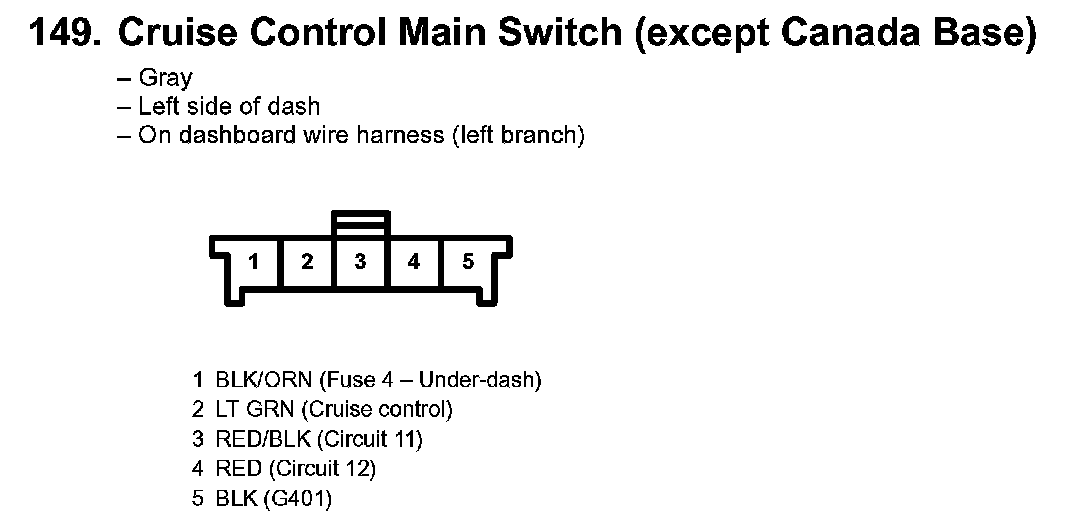 149. Cruise Control Main Switch (except Canada Base):
