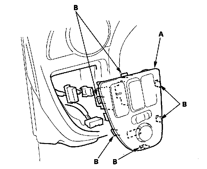 Main Switch Test/Replacement1. Gently pry up on the driver's switch panel (A) to release the hooks (B), then pull out the panel.