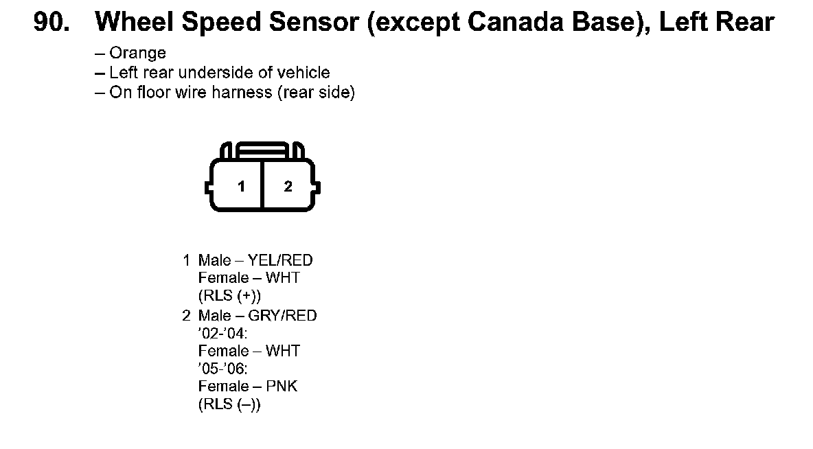 90. Wheel Speed Sensor (except Canada Base), Left Rear: