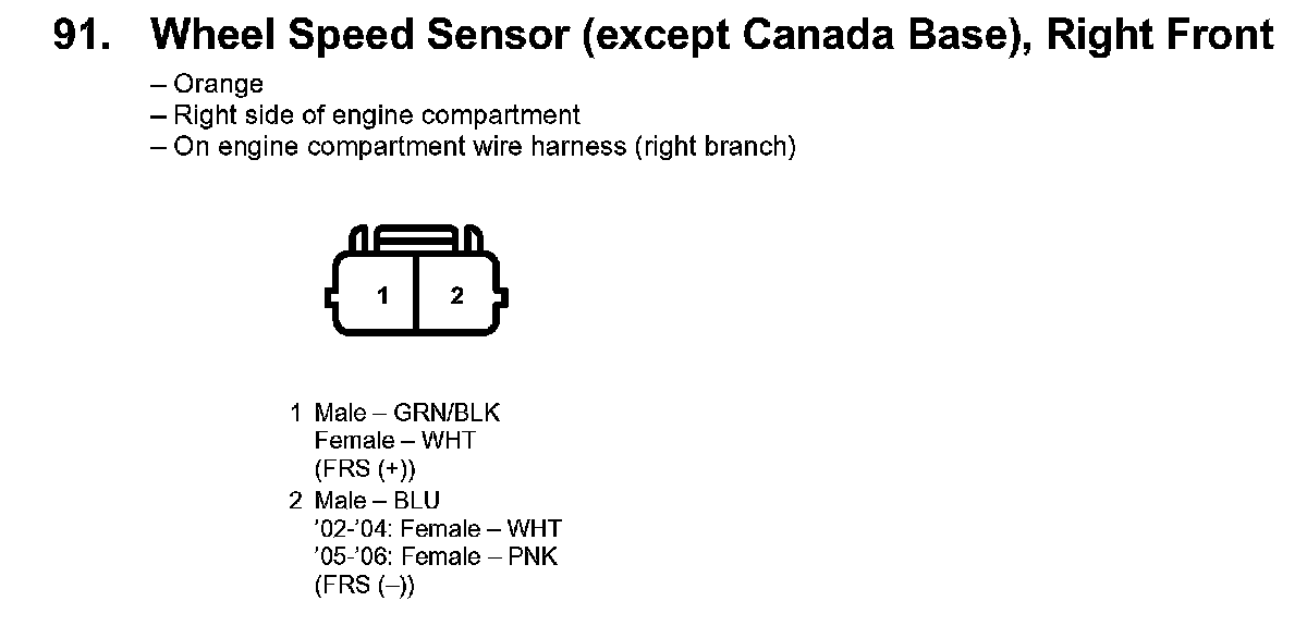 91. Wheel Speed Sensor (except Canada Base), Right Front: