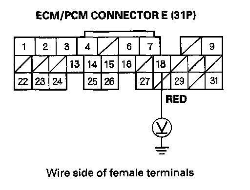 13. Measure the voltage between the No. 18 terminal of ECM/PCM connector E (31P) and body ground with the ECM/PCM connectors connected.