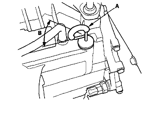8. Insert the dipstick (A) back into the transmission in the direction (B) shown.