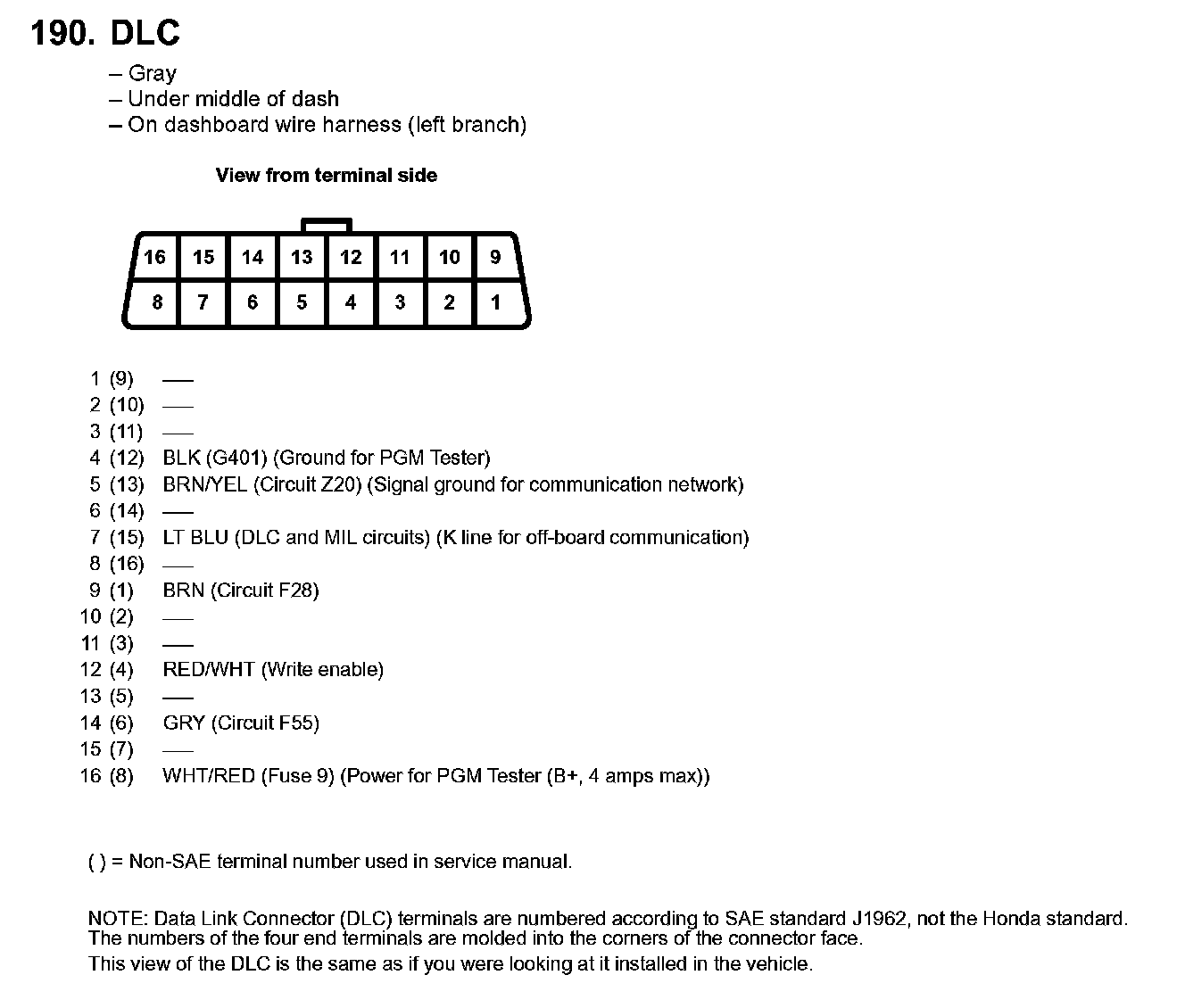 Data Link Connector: Diagrams