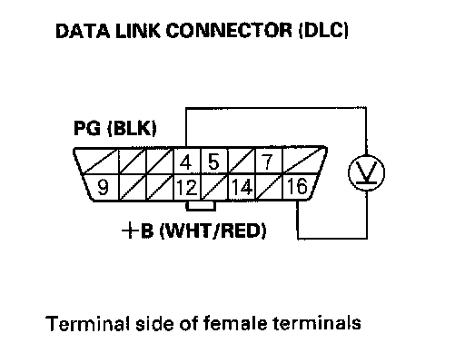 1. Measure voltage between DLC terminal No.16 and body ground.