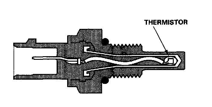 The ECT sensor is a temperature dependent resistor (thermistor). The resistance of the thermistor decreases as the engine coolant temperature increases.