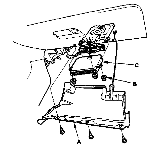 2. Remove the ECM/PCM mounting bolts (B) and the ECM/PCM (C).