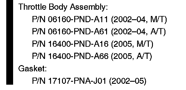 2005 RSX M/T - From VIN JH4DC538.58000001 thru JH4DC538.58009562