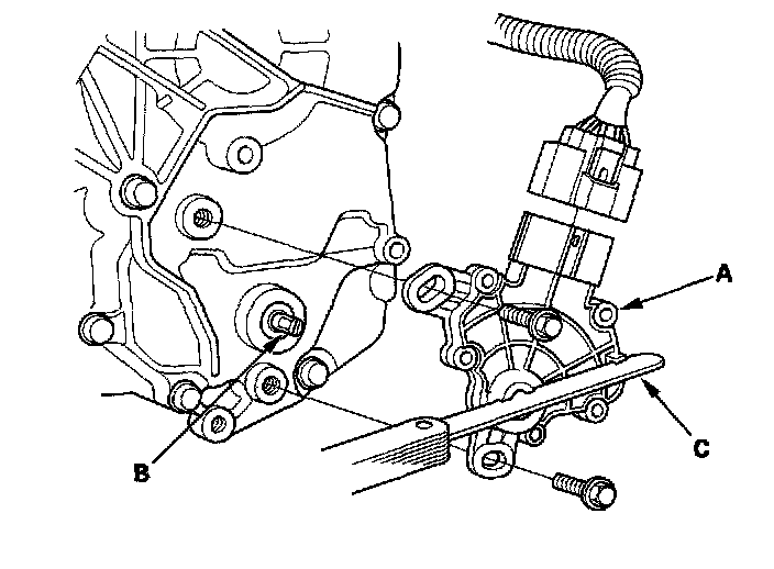 8. Install the transmission range switch (A) gently on the control shaft (B) with holding the N position with the 2.0 mm (0.08 inch) blade (C).