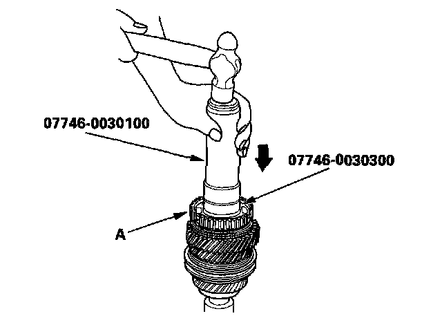 5. Install the 3rd/4th synchro hub (A) using the special tool.