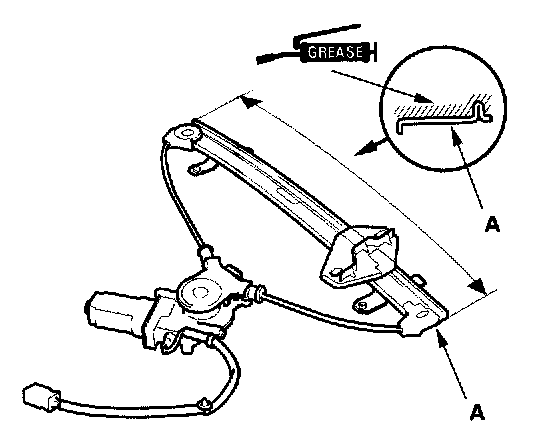 5. Apply multipurpose grease to all the sliding surfaces of the regulator (A) where shown.