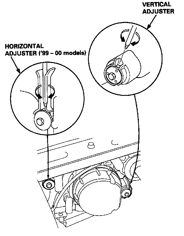 6. If necessary, adjust the headlights to local requirements by turning the horizontal adjuster and the verticle adjuster.