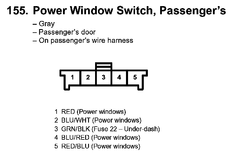 155. Power Window Switch, Passenger's: