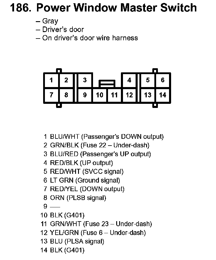 186. Power Window Master Switch:
