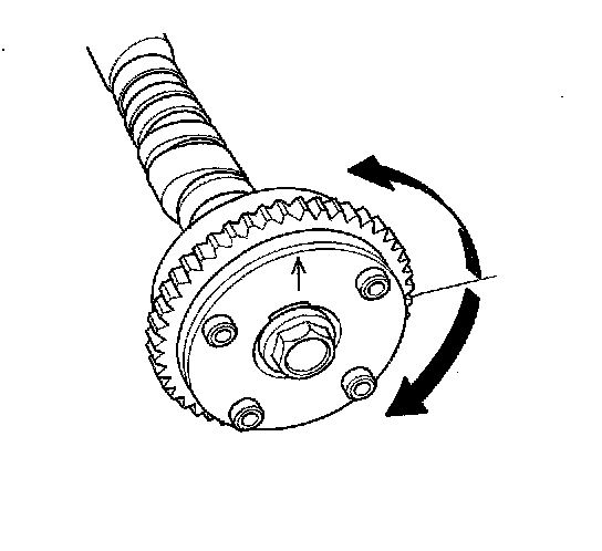 6. Check that the Variable Valve Timing Control (VTC) actuator is locked by turning the VTC actuator clockwise and counterclockwise. If the VTC actuator is not locked, replace the VTC actuator.