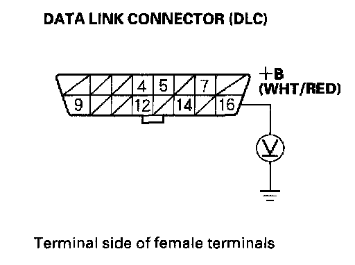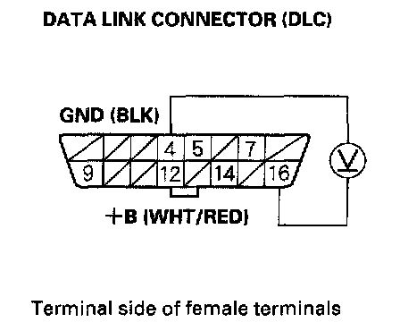 1. Measure voltage between DLC terminal No.16 and body ground.
