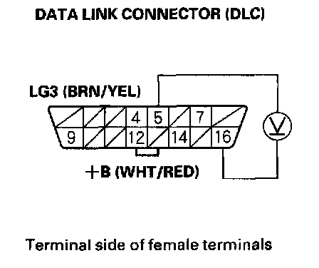 3. Measure voltage between DLC terminals No.5 and No.16.