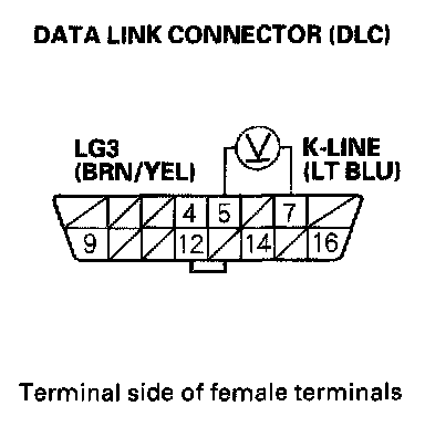 13. Measure voltage between DLC terminals No.5 and No.7.