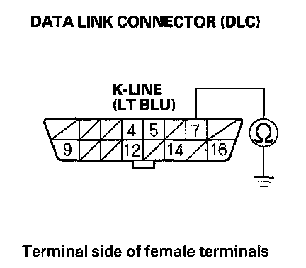 8. Check for continuity between DLC terminal No.7 and body ground.