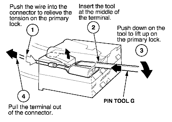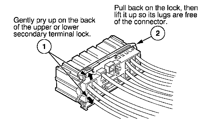 - If it has a secondary terminal lock, go to Connectors With a Secondary Lock. A secondary lock, found on most connectors on some models, is an additional locking device on the connector housing as a backup for the primary lock on the terminal.