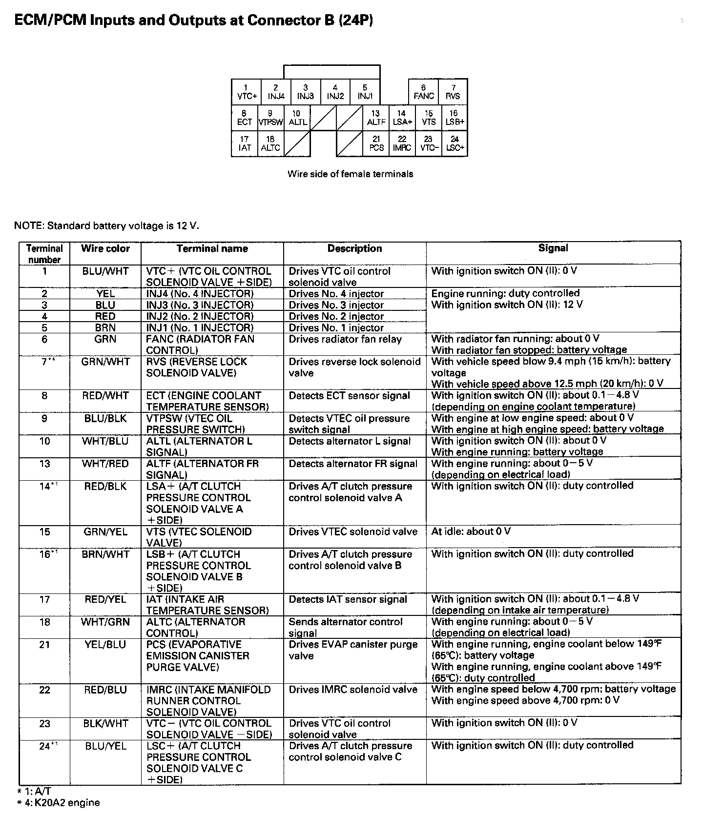 ECM/PCM Inputs And Outputs At Connector B (24P):