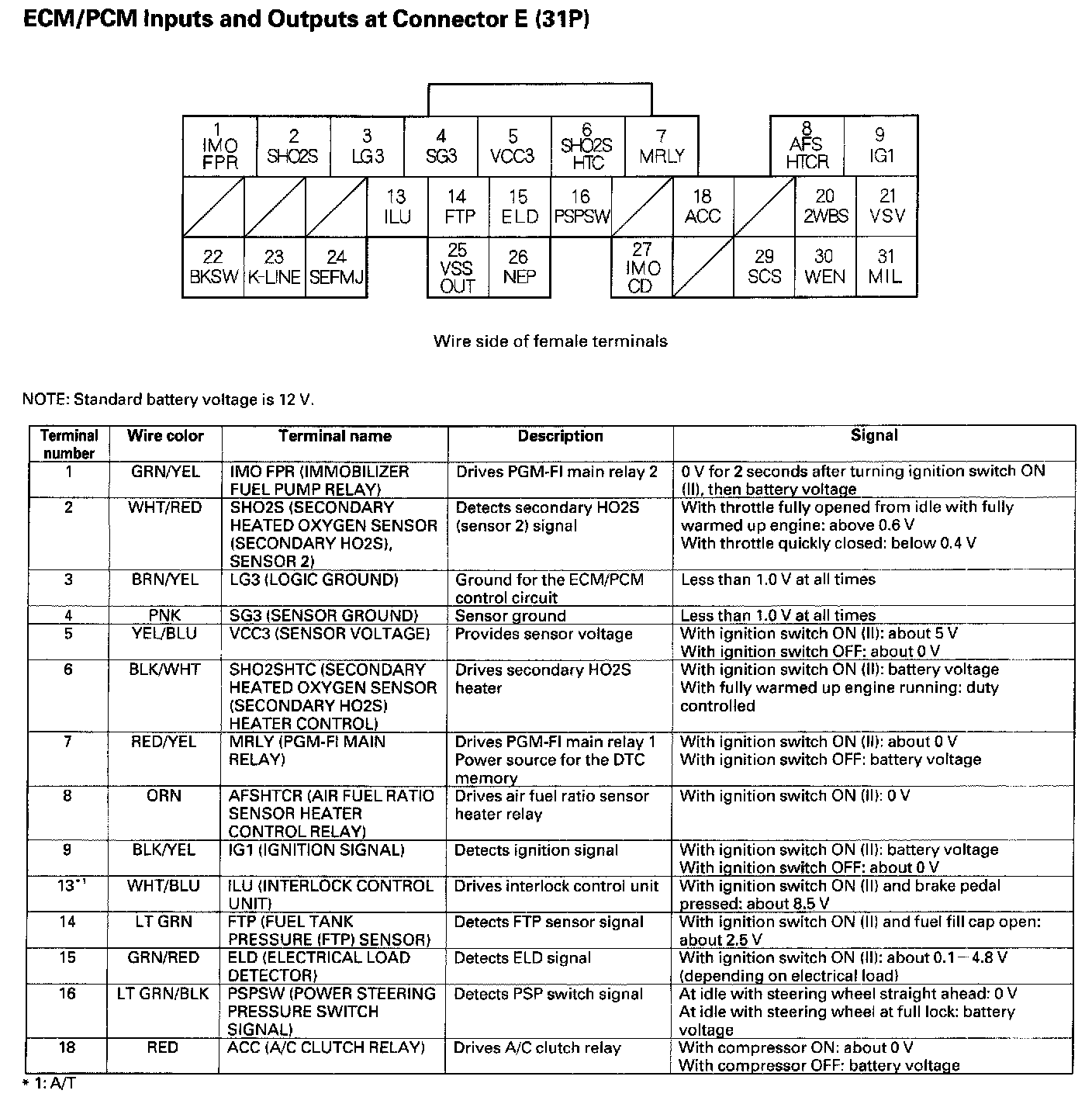 ECM/PCM Inputs And Outputs At Connector E (31P) Part 1: