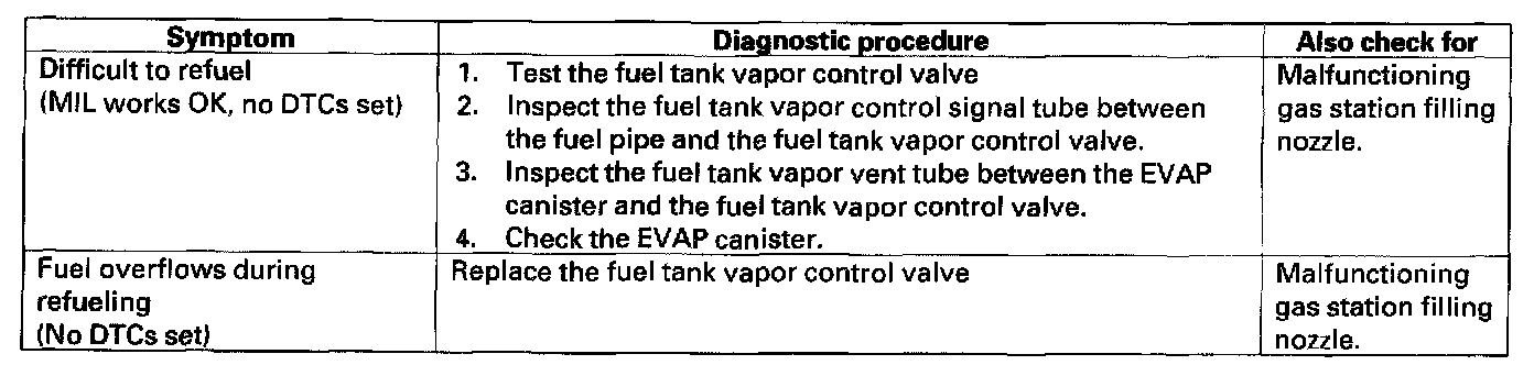 When the vehicle has one of these symptoms, check for a diagnostic trouble code (DTC) with the scan tool. If there is no DTC, do the diagnostic procedure for the symptom, in the sequence listed, until you find the cause.