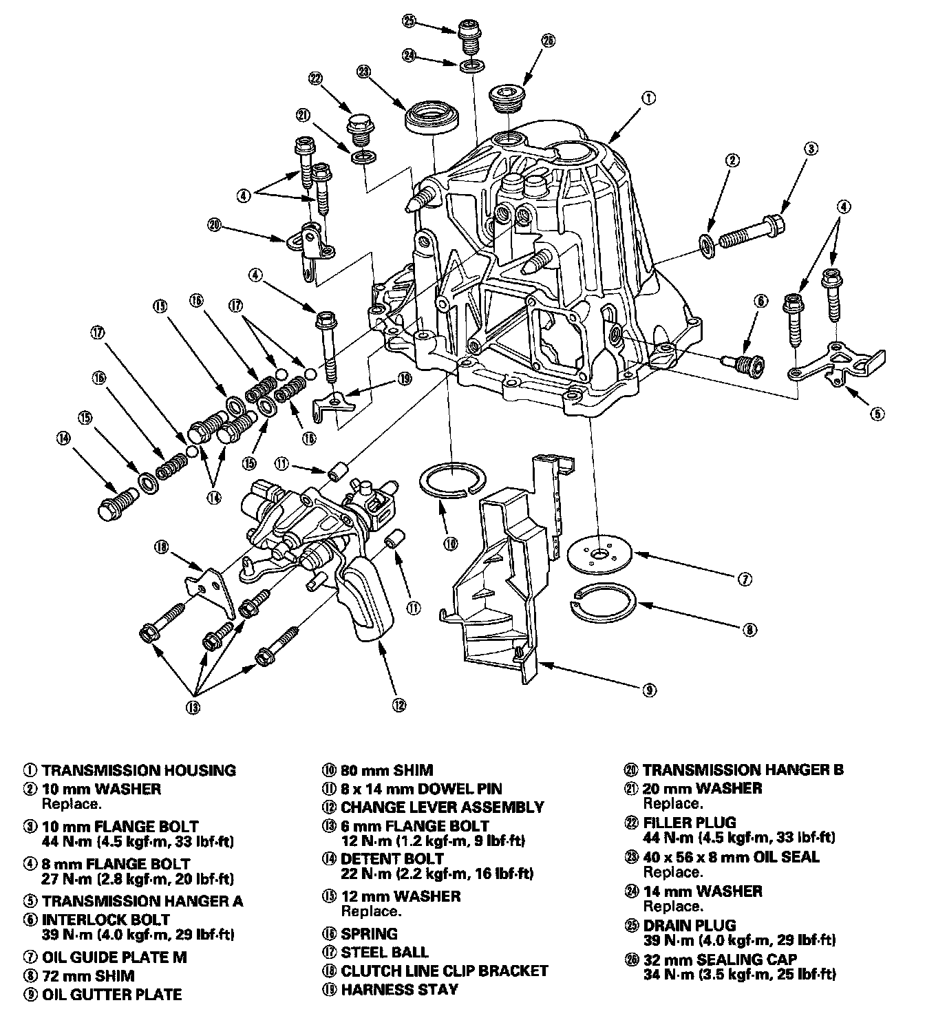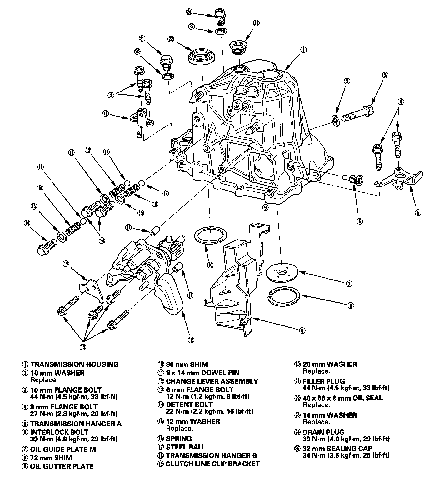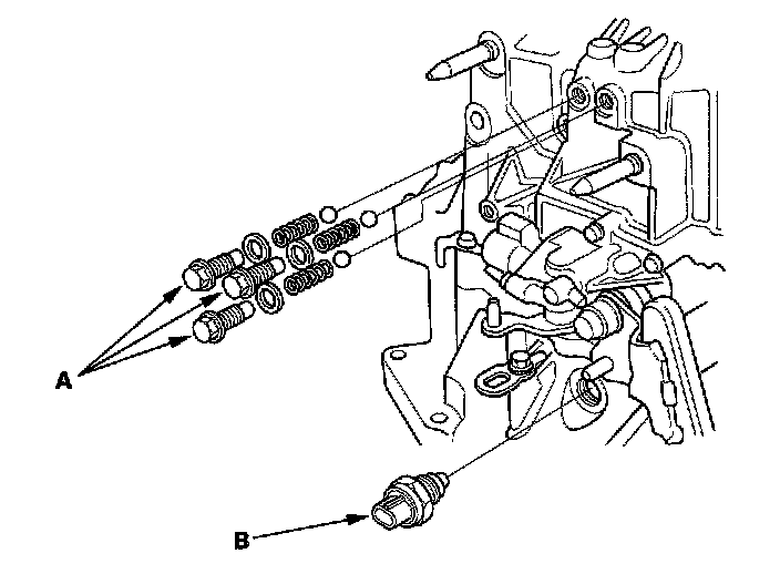 1. Remove the detent bolts (A), springs, steel balls and back-up light switch (B).
