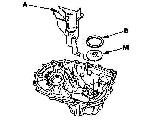 16. Remove the oil gutter plate (A), oil guide plate M, and 72 mm shim (B).