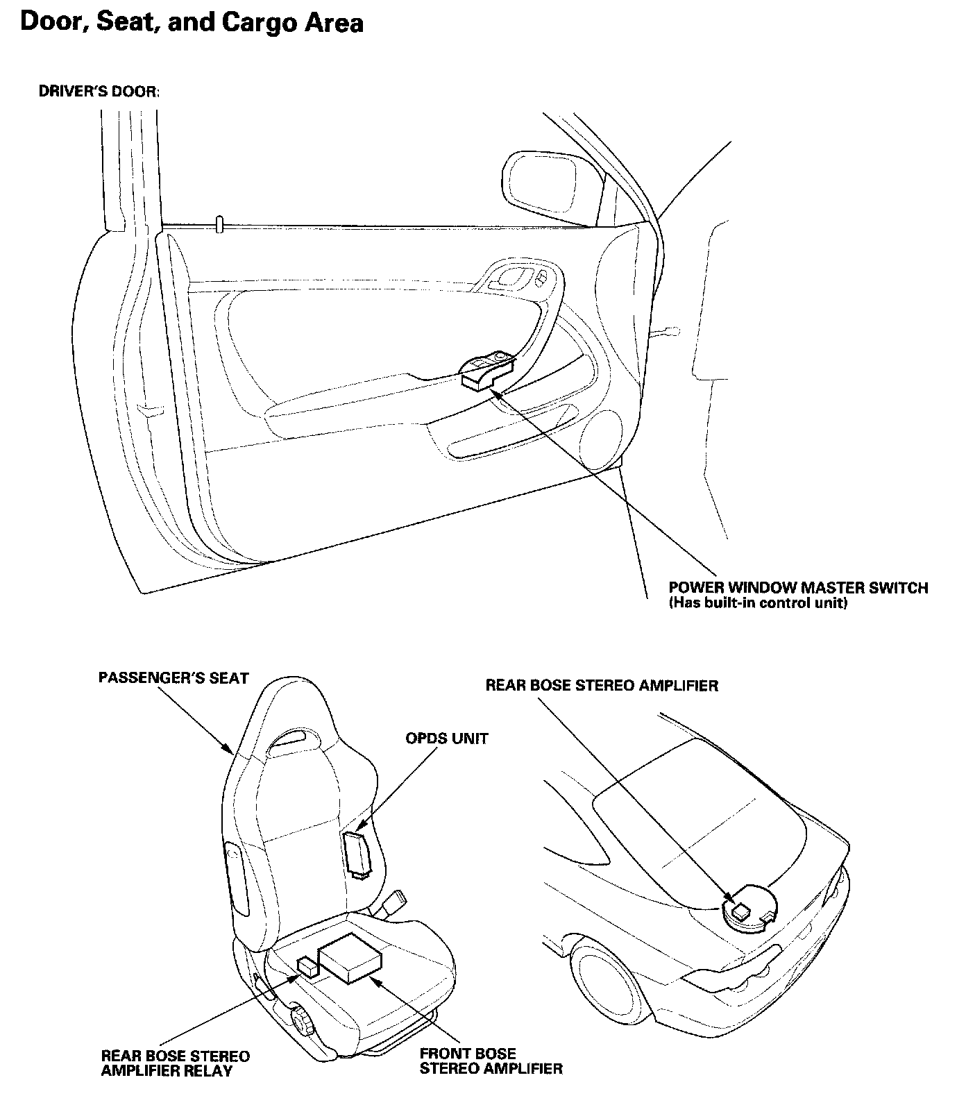 Relay And Control Unit Locations - Door, Seat, And Cargo Area: