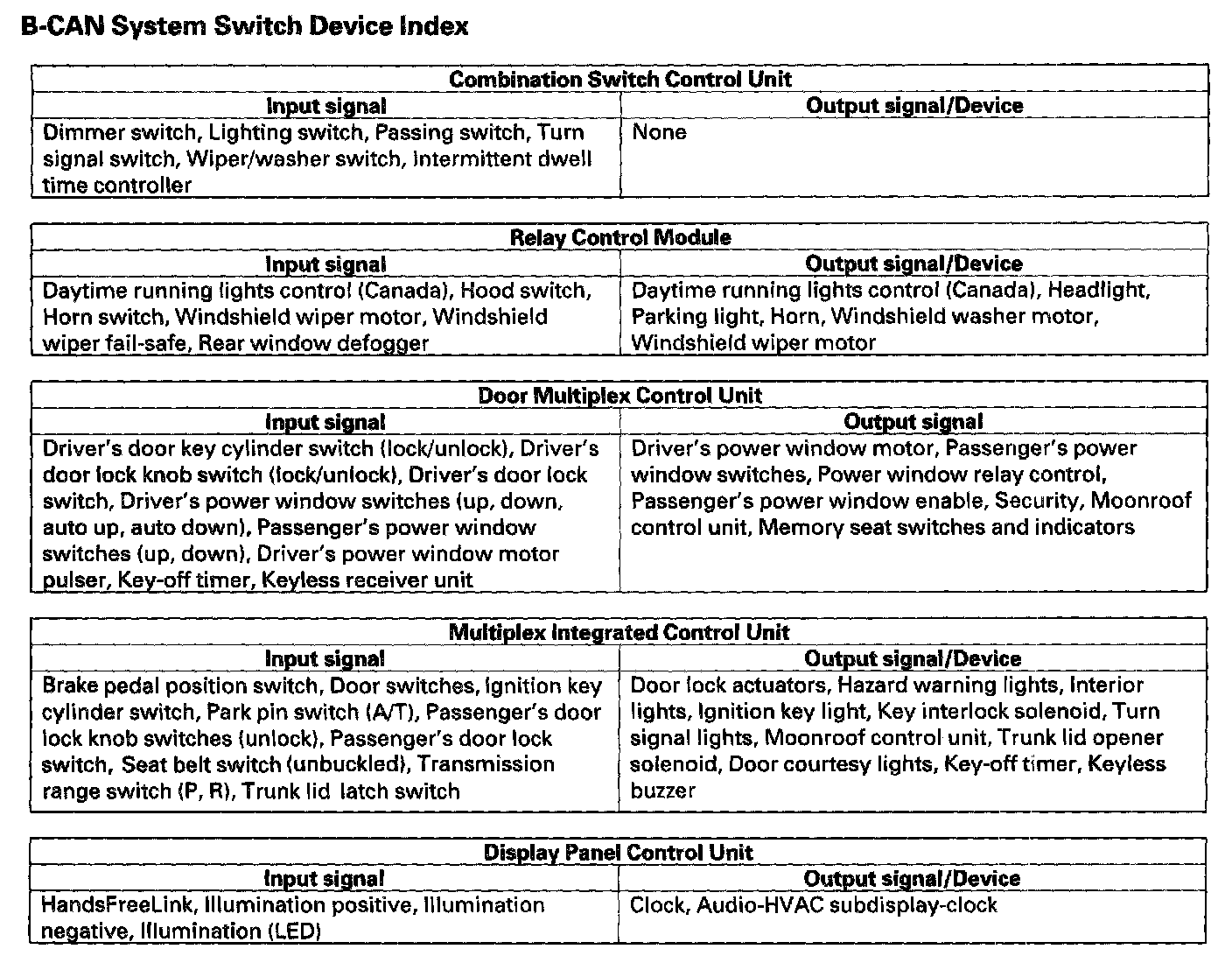 B-CAN System Switch Device Index