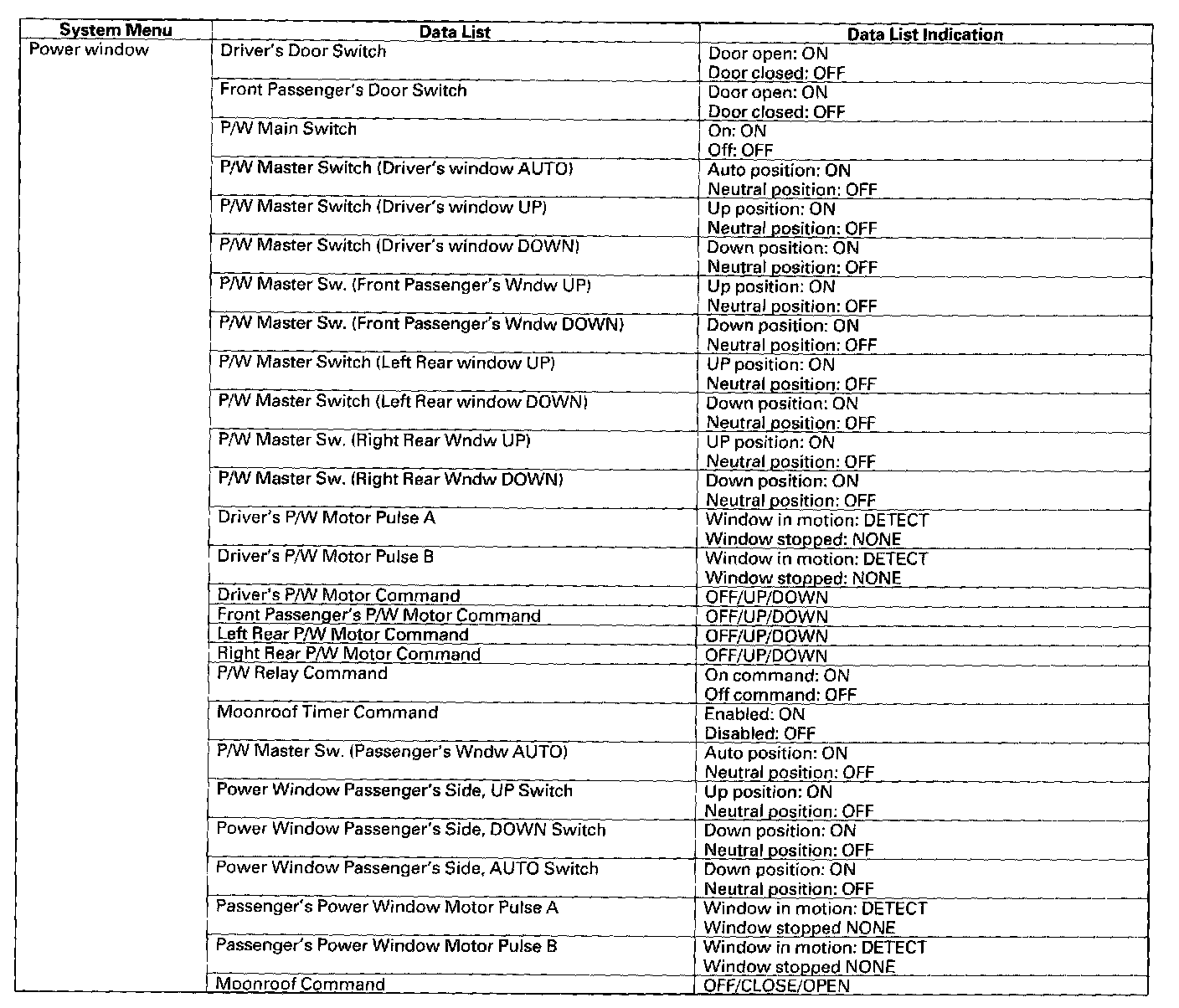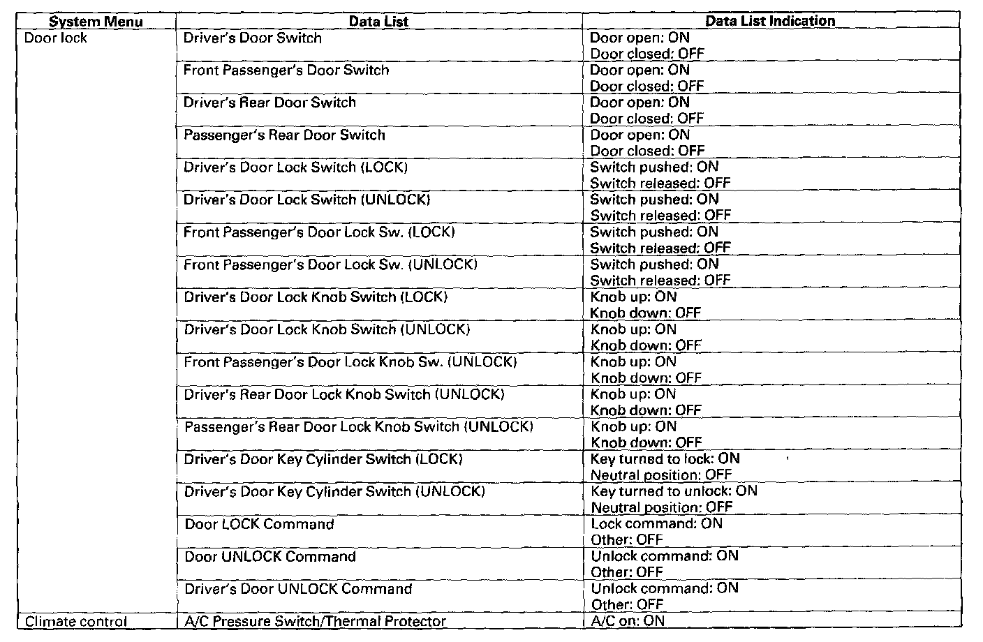 4. Each ECU that expects to receive the door lock switch signal from the door multiplex control unit will transmit DTCs for the signal that it did not receive