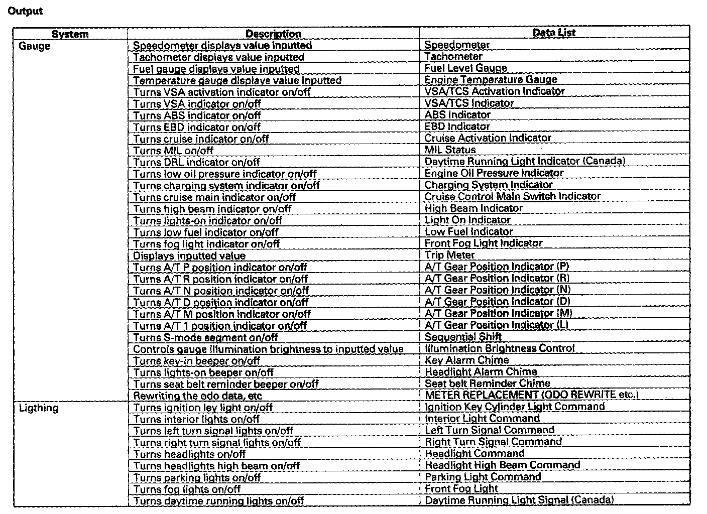 HDS Inputs And Commands - Output: