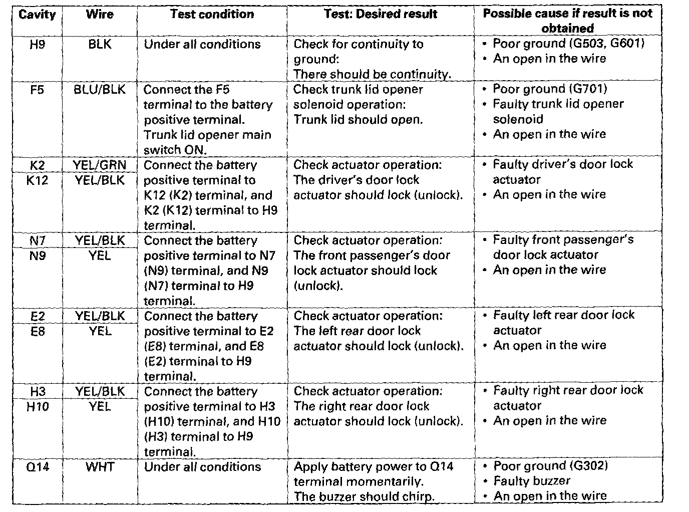 Control Unit Input TestNOTE: Before testing the keyless entry/security control system, troubleshoot the multiplex integrated control system.