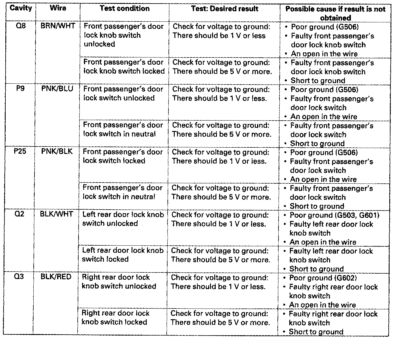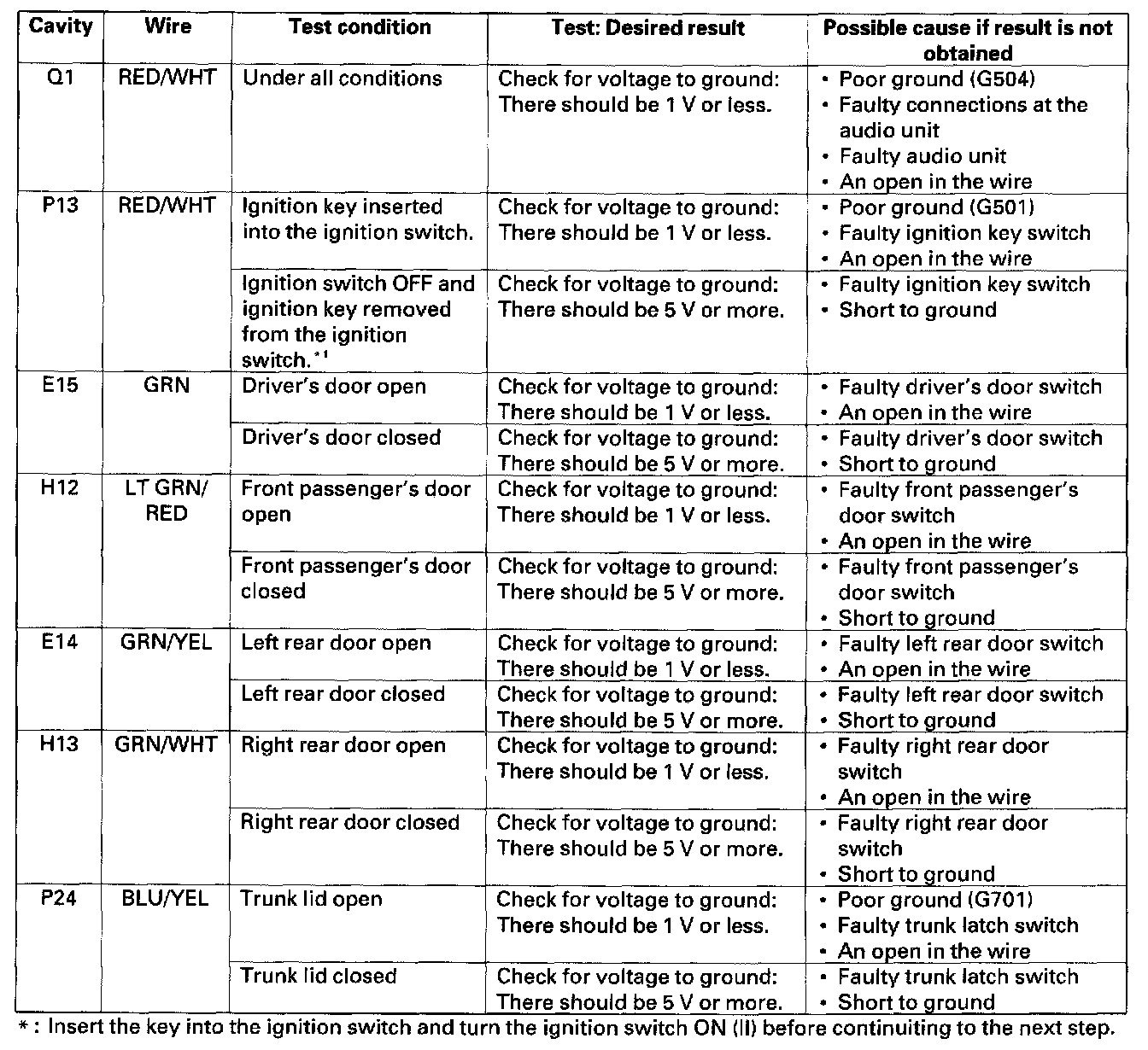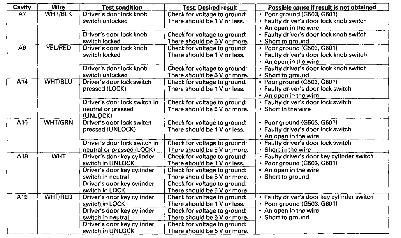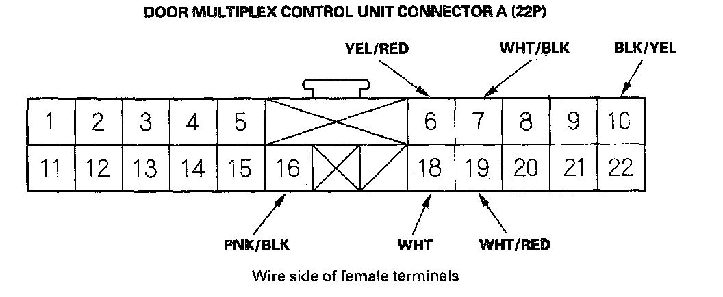12. Reconnect the connector to the door multiplex control unit Turn the ignition switch ON (II) and make these input tests at the connectors