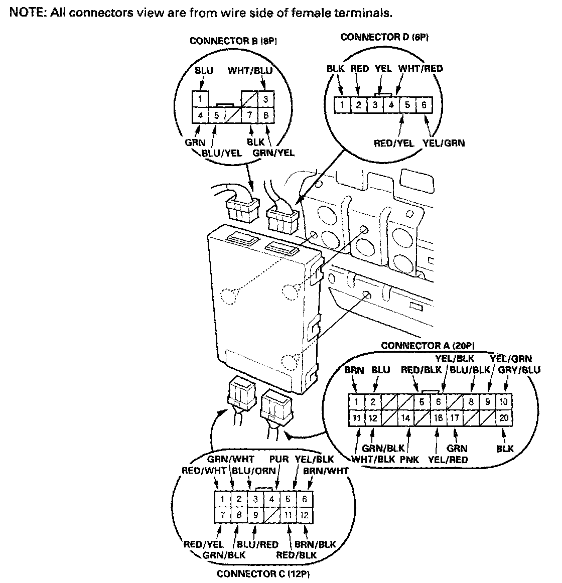 5. With the power seat control unit still disconnected, make these input tests at the connectors.