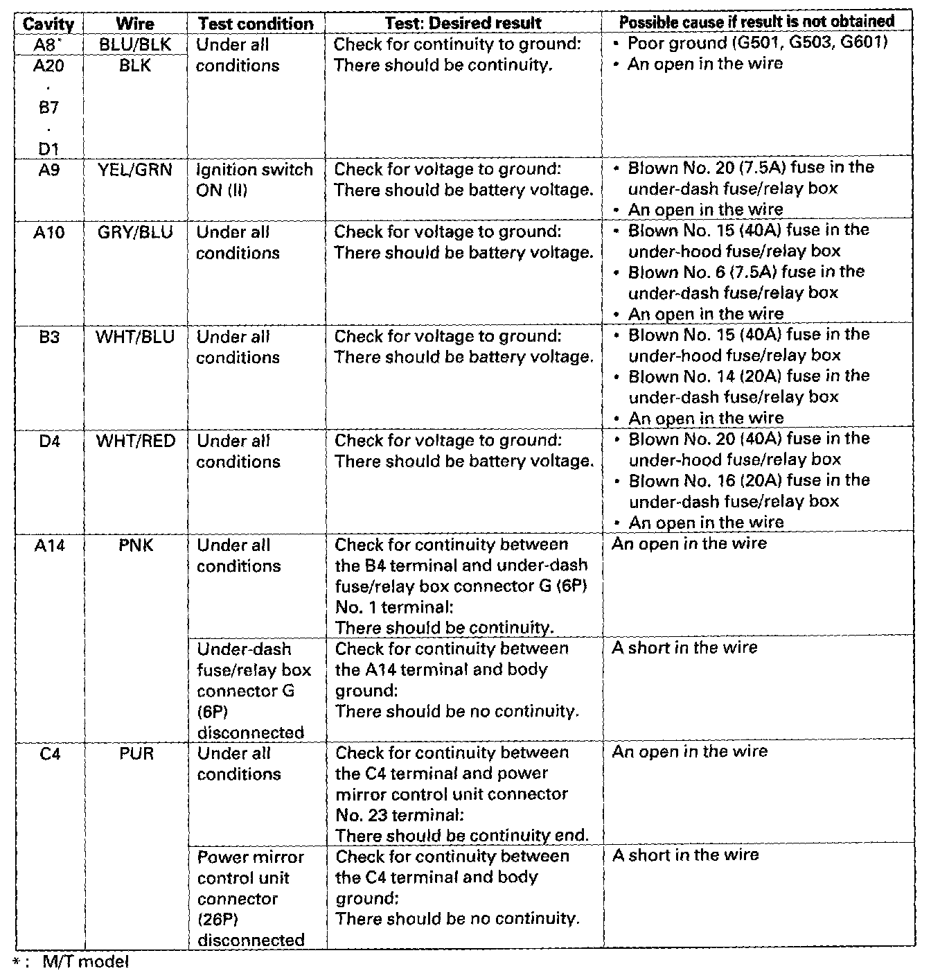 Power Seat Control Unit Input TestNOTE: Before troubleshooting the DPMS, troubleshoot the multiplex integrated control system first using B-CAN System Diagnosis Test Mode A.