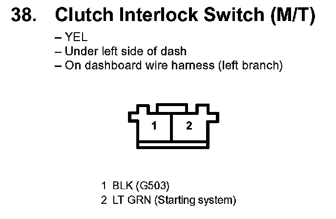 38. Clutch Interlock Switch (M/T):