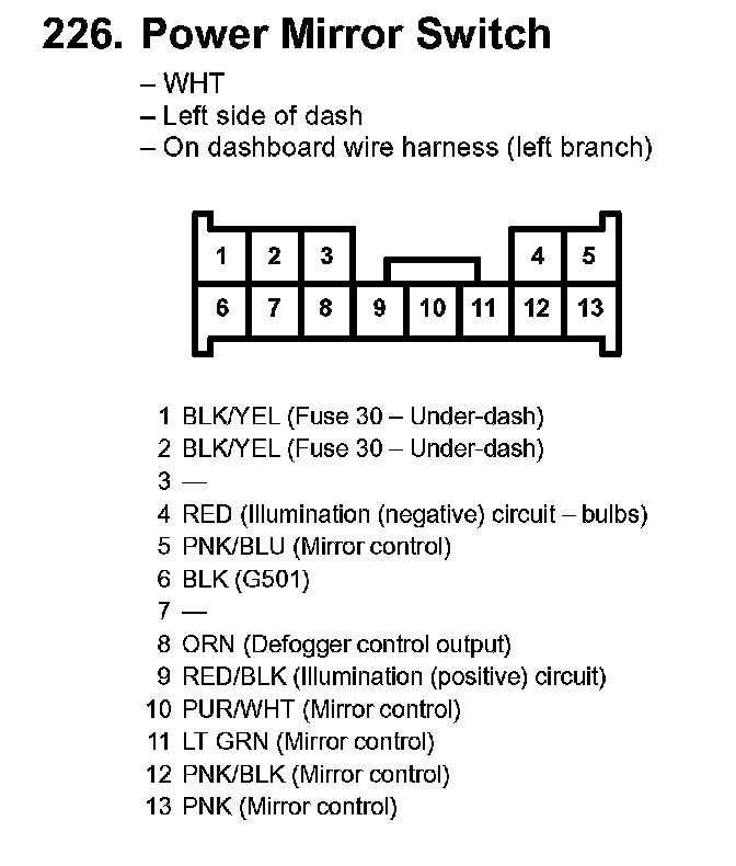 226. Power Mirror Switch: