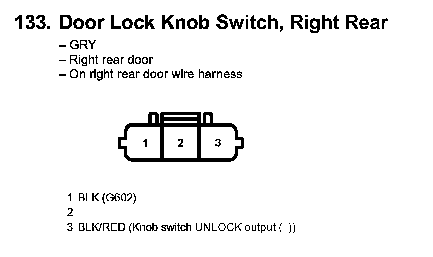 133. Door Lock Knob Switch, Right Rear: