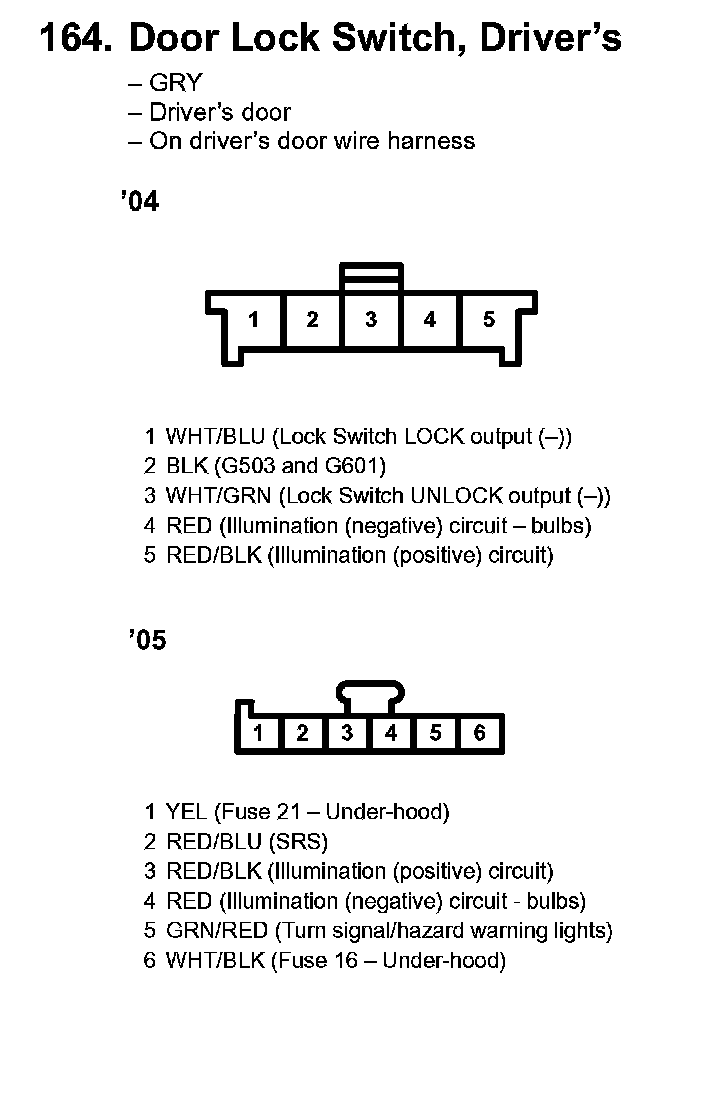 164. Door Lock Switch, Driver's: