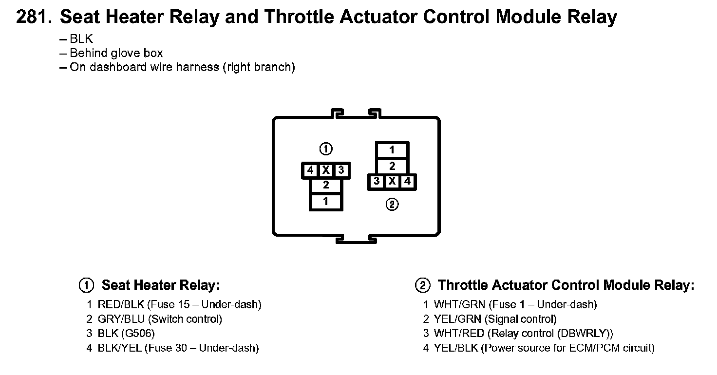 281. Seat Heater Relay And Throttle Actuator Control Module Relay: