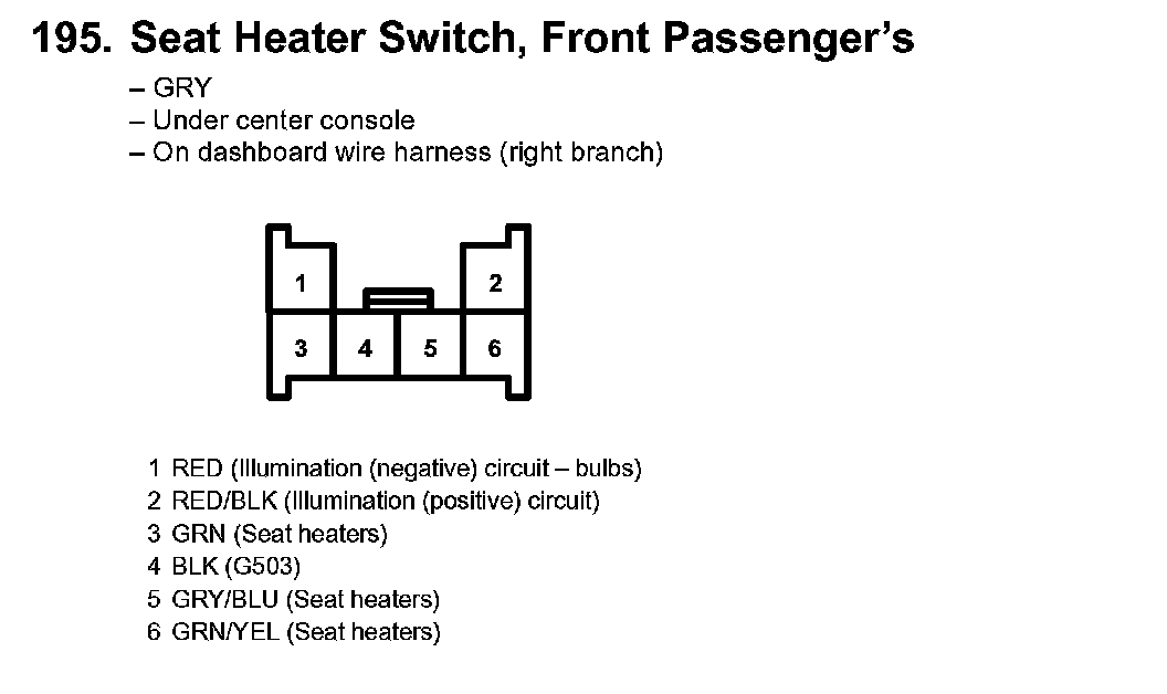 195. Seat Heater Switch, Front Passenger's: