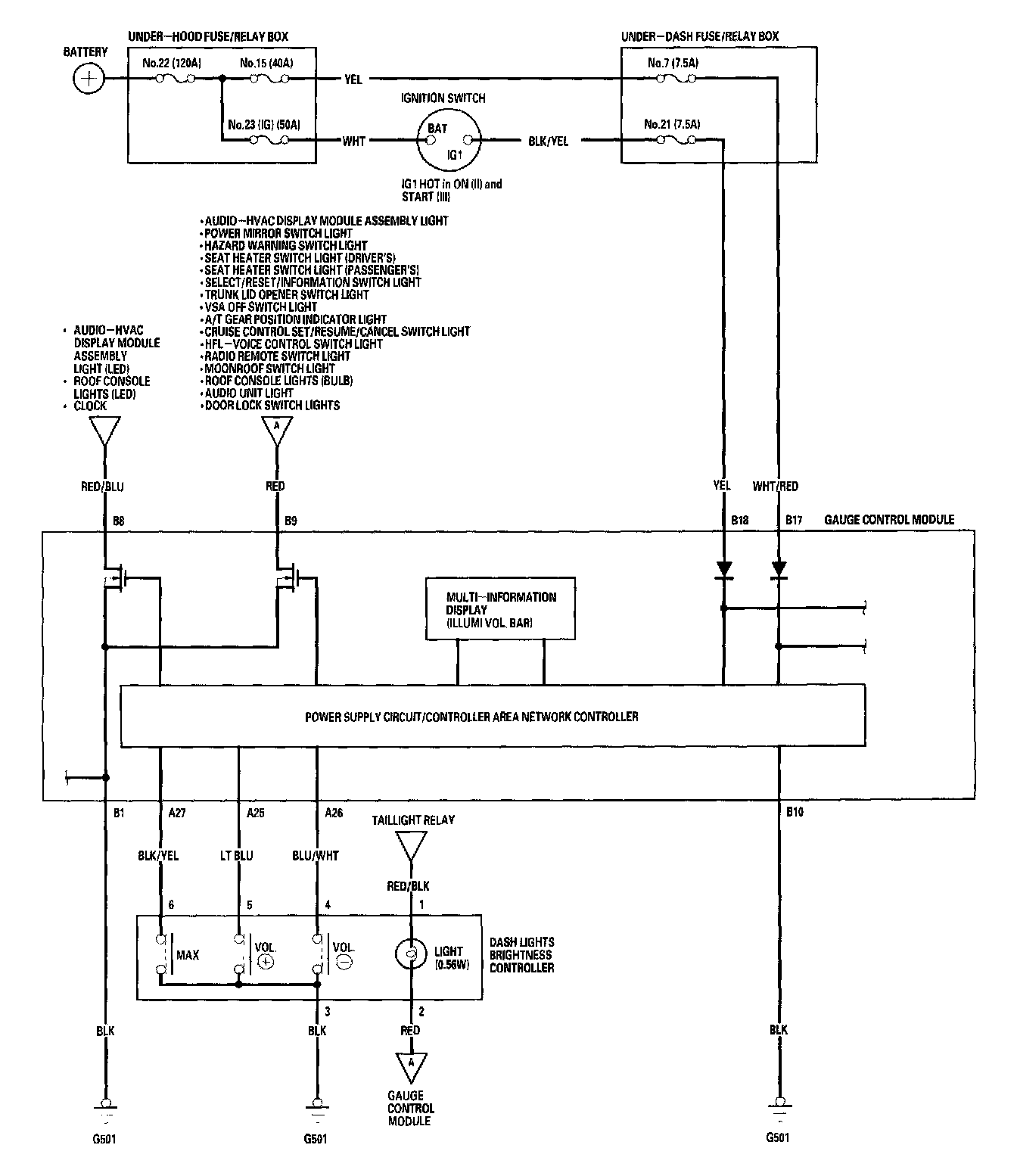 Dash Lights Brightness Controller - Circuit Diagram: