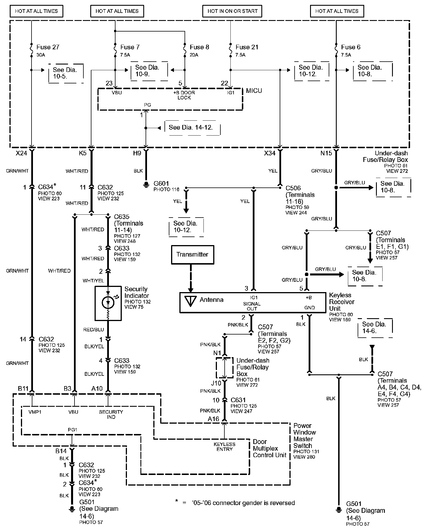 Connector Views: Connector terminal views (references to VIEWS) referred to within these diagrams can be found at Connector Views by View Number. Connector Views By View Number