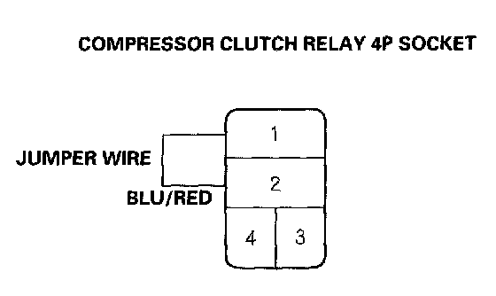 5. Connect the No.1 and No.2 terminals of the compressor clutch relay 4P socket with a jumper wire.