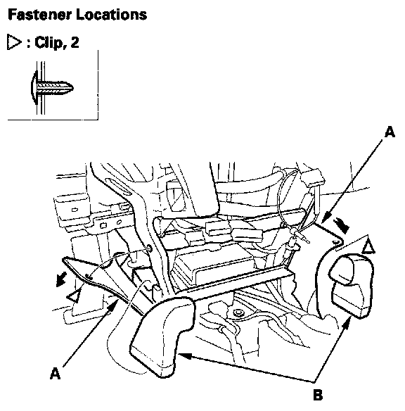 4. Detach the clips, then remove the rear vent duct (A).